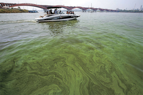 【写真】漢江を覆った緑藻・ソウル