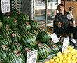 市場ではご覧のとおり、もう夏!といわんばかりにスイカがずらり。まだ早い?と思いきや、これがなかなかおいしいのです。