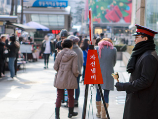 キリスト教団体「救世軍」によって、毎年年末に行なわれる募金活動「慈善鍋(チャソンネンビ、社会鍋)」。小さな鐘をチリンチリンと鳴らしながら、赤い鍋に募金をする風景は、韓国の年末の風物詩の一つとなっています。