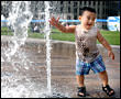 噴水に乗って宙に舞い上がりそうなくらい小さな彼。