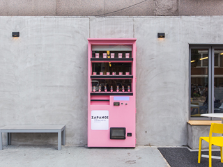 カフェ「ZAPANGI(チャパンギ・韓国語で自動販売機のこと)」は、ピンクの自動販売機が入口のドアになっているユニークさで、日本でも話題になっています。