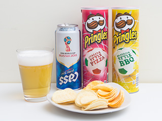 14日に開幕したワールドカップ。限定商品を韓国コンビニでチェックしてみましょう!「プリングルス」には日本未発売の新フレーバーが2種類登場。サッカーボールのデザインが入ったパッケージに、サッカー大国の代表料理をモチーフとした味のポテトチップスが入っています(各3,300ウォン)。