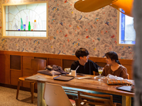 モダンな内装がすてきな「ホテル水仙花」は、3名のデザイナーが運営するカフェ&バー兼ショールーム。展示や公演などさまざまな韓国アーティストの交流活動も行われるそう。