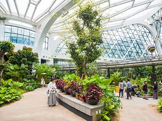 「テーマ園」の一部である温室には、熱帯・地中海12都市の植物を身近に鑑賞できます。温室全体を俯瞰できる「スカイウォーク」からは、地上とはまた違った風景を楽しむことも。