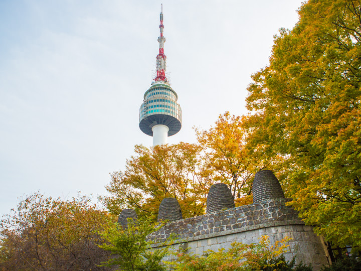 人気観光地・明洞(ミョンドン)から循環バス等で向かえますが、天気がよい日は徒歩で登るのもおすすめ!道中にはキレイに色づいた紅葉を楽しめる絶景が待っています。