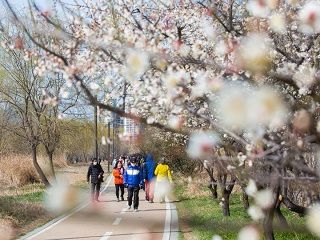 龍踏駅の近くには「河東(ハドン)梅並木道」があり、3月下旬ごろからは春の花が咲き誇ります。