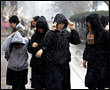 韓国では今日のような黄砂を含んだ雪を「黄砂雪(ファンサヌン)」と呼ぶそうですよ。女子高生たちは突然の黄砂交じりの雪にもフードで万全の対策!!