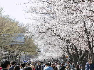 蚕室(チャムシル)の「ロッテワールド」を囲むように位置する「石村湖(ソッチョンホス)」はソウルの桜の名所として知られています。