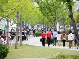 若者が多く集まる大学街・弘大(ホンデ)。最高気温20度以上の暖かい気候が続き、薄い上着や半袖で街を歩く人が増えてきました。
