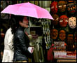 今日のソウルは雨。春の雨がしとしと優しく降っています。ざあざあ降ったら露店もしまいますが、これくらいなら大丈夫、と頑張るお姉さん。自分に傘をささなくても、商品には傘をさしています。