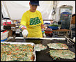 この「ソウルフードフェスティバル」は様々な韓国料理をお手軽価格で味わえるという、食いしん坊さんにとっては嬉しい限りのイベント。こちらのアジュンマ(おばさん)が一生懸命焼いているのは日本人にも大人気のチヂミ。外はカリッ、中はモチモチっとした食感がたまりません!