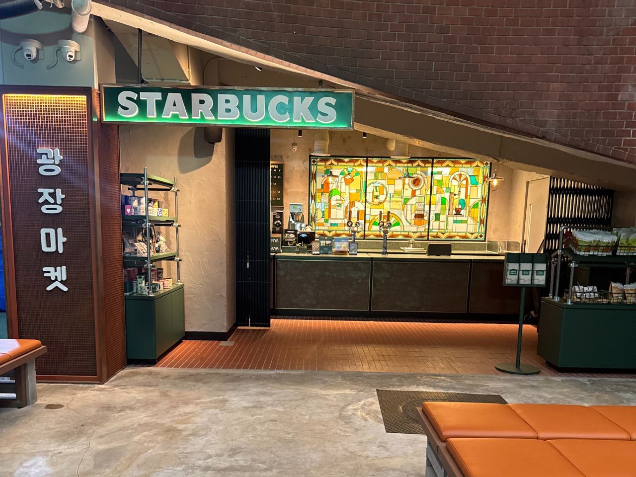 100年以上の歴史を持つ広蔵市場を店舗デザインに取り入れ、看板・タイルなど市場らしいモチーフになっています✨約250席規模の市場の中とは思えない広さ!店舗限定のスぺシャルメニューやグッズの販売があります💕