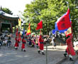 一瞬にして鋭い刀で藁の束を切り落とす武芸に拍手喝采。お見事です!