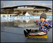 こちらのスケート場には、「ソルメ」という韓国式のソリ遊びができる専用リンクもあるんです。「もっともっとー」急かす坊やの隣で、お姉さんは少々息切れ中…。
