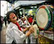 市場で騒がしい音がするのでのぞいて見ると…「カクソリ」の客寄せでした!