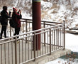 写真の2人が眺めているのは、名勝・孤石亭(コソッチョン)。今はまだ雪と氷の世界ですが、夏はこの漢灘江(ハンタンガン)でボート下りをするそうですよ。
