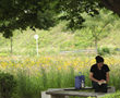 川岸に腰掛けて釣りを楽しむアジョシ(おじさん)。竿を2本出していましたが、釣り上げる瞬間は中々見られません。それでも川面から来る風を受けてちょっと涼しそうでした。