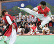 テッキョンは足を多用する点ではテコンドーと似ていますが拳を使わないのが特徴。両腕を柔軟に使うしなやかな身のこなしが魅力です。1983年に韓国の重要無形文化財第76号に指定され、2011年にはユネスコ世界無形遺産に認定されました。