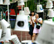 弘大付近のギャラリー。風変わりなディスプレイに通行人も興味津々。