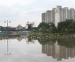 22日未明から午前中にかけてソウル、京畿道(キョンギド)、江原道(カンウォンド)では1時間に40ミリの雨が降り、豪雨警報が発令。ソウル市内の遊水地にも大量の水が流れ込み、雨の激しさを物語っていました。