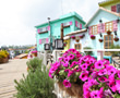 パステルカラーの可愛らしい建物が並ぶ街は、まるでメルヘンの国。レストランやカフェのほか、アクセサリーや雑貨などのショップが約50店舗も集まっています。各店のスイートな外観に、散策しているだけでも気分がアップ!