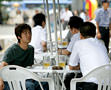 夏はビジネスマン達の軽く一杯出来る場所に変身!暑い夏を乗り切ろうとビールでカンパ〜イ!!いや〜美味しそう。