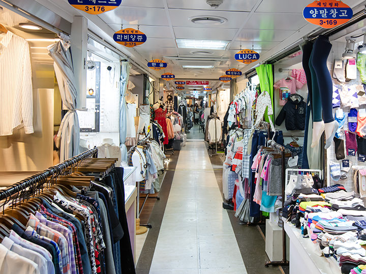 1979年オープンの「第一平和市場」は東大門(トンデムン)で韓国レディースファッション界をリード。現在も20~40代向けの女性ファッション店が多く入店しています。2016年5月には「光熙市場(クァンヒシジャン)」に入店していた革・レザー、毛皮店の多くが「第一平和市場」の5階に移転し、更にパワーアップ。「東大門レザー市場」の異名を受け継いでいます。フロアは地下1階から5階まであり、卸売業者が頻繁に出入し、小売り販売はしない店舗もあるほか、値段の表示をしない店舗も多く、日本語もあまり通じませんが、値段の割りにデザインがおしゃれで品質も良いと評判のファッションビルです。