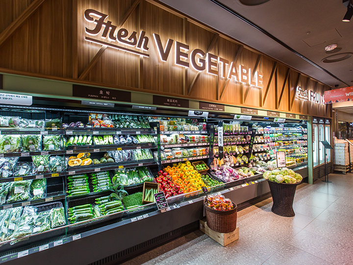 「ロッテプレミアムフードマーケット」は、ロッテ系列のスーパーマーケットのひとつ。名前の通り、他の一般的なスーパーに比べ、新鮮かつ高品質な生鮮食品を豊富に取り揃えるプレミアム・スーパーマーケットです。「孔徳(コンドッ)店」は地下鉄5・6号線、空港鉄道A’REX、京義・中央線が乗り入れる孔徳駅からすぐ。「ロッテシティホテル麻浦」の地下1階に位置しているので、ホテル宿泊客に特に便利です。旅行客向けには旅行中の買い足しや、キムチ、ラーメン、お菓子、韓国海苔、韓方シャンプーなどの定番お土産のショッピングにピッタリ。なお、スーパー内には「TASTY TABLE」という店内で購入したものを、すぐ食べられるコーナーもあり、観光客にも人気です。