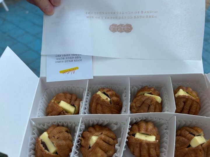 このお店一番ノーマルなホドゥカジャもすごく美味しいのですが、今回は少し変則的なバターホドゥカジャとハーフ&ハーフ16個8,800ウォンで買って食べてみました。