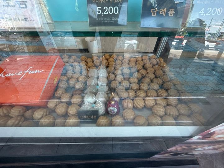 「駅徒歩0分」より便利な店があるのか?とお思いかもしれませんが、「合井駅」構内には私が確認しただけでも2箇所に、焼き菓子「Manjoo」の店があります。クリーム入りで11個2000ウォン、17個3000ウォン。さらにホドゥクァジャ(3000ウォン)も置いています。駅内を移動中に漂う甘い香りに、「贈答用」でない場合はここで即買いしてしまう・・・というのが私の推測です。