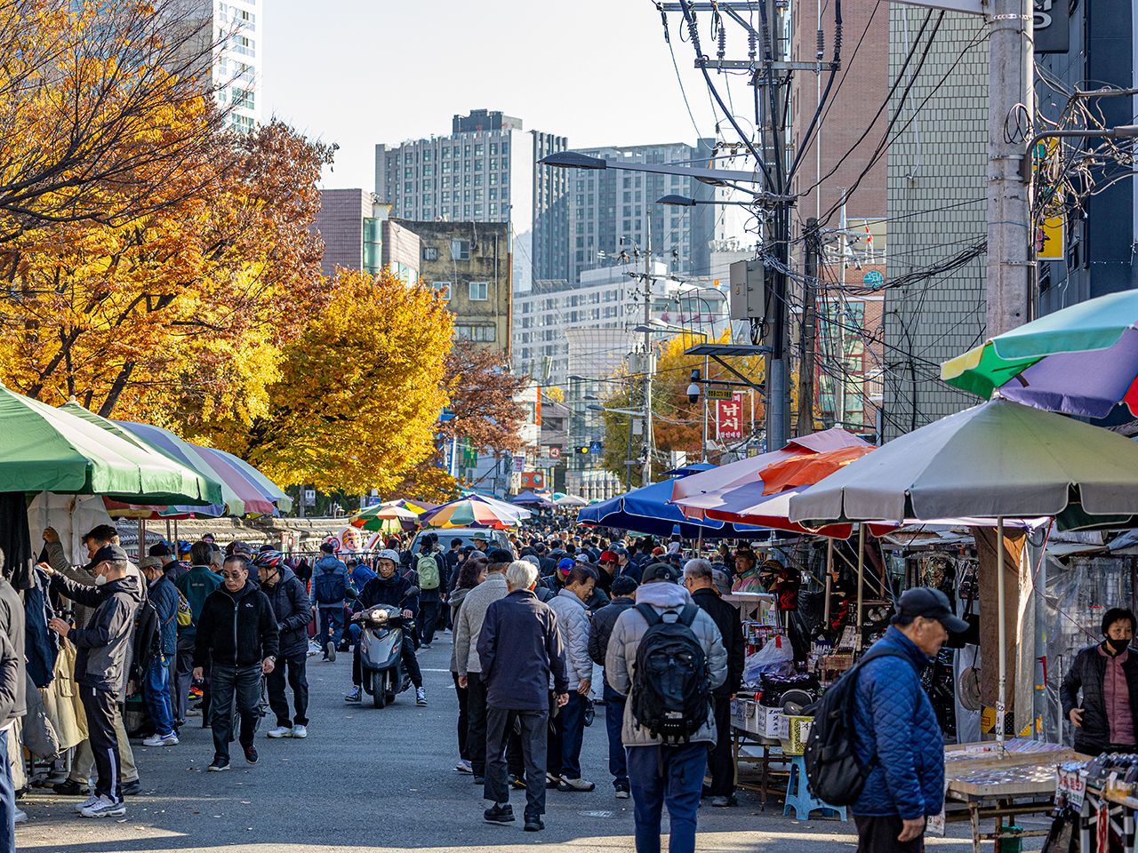 特に2003年~2005年に進められた清渓川復元工事で商売の場所を失った黄鶴洞フリーマーケットの商人たちが押し寄せ、現在の姿を整えた。