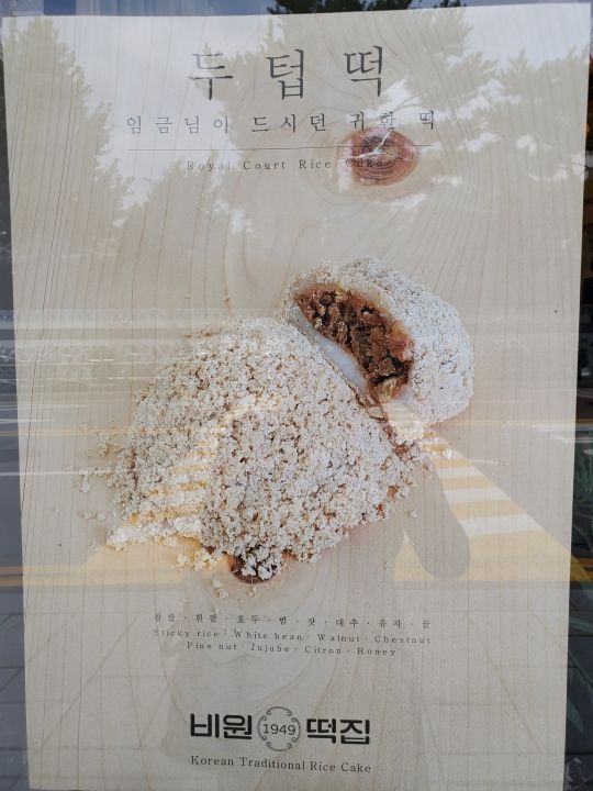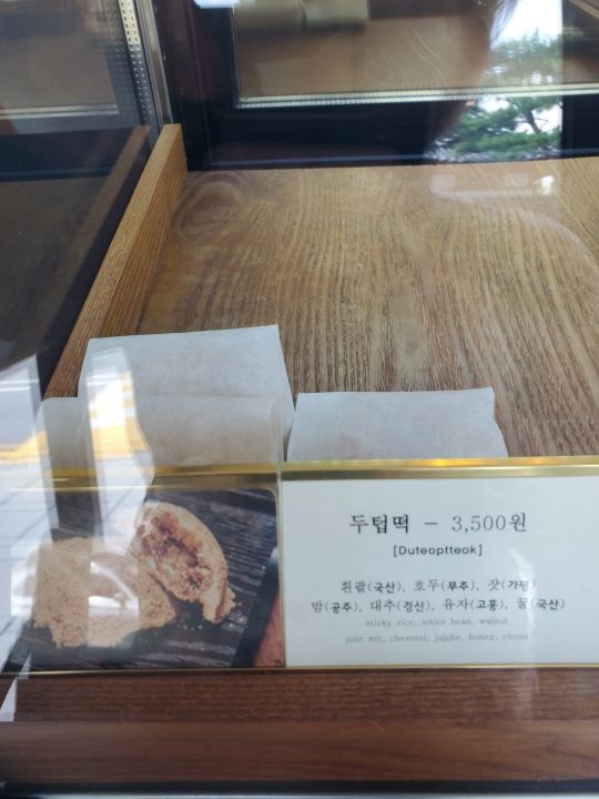 おっ、「두텁떡(ドゥトットッ)3000ウォン」というのがあります。別の伝統菓子店で話題になっていた餅ではないでしょうか。