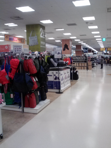 が、その入口からは想像できないほど広い支店です。空港店の面積にはさすがに及びませんし、フードコートはやや貧弱(面積は非常に広い)ですが、食品・生活雑貨のほか、玩具・文具・衣料・子ども服売場なども充実しています。