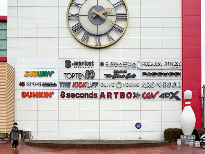釜山(プサン)地下鉄3号線の「総合運動場駅」あたりは、野球場・陸上競技場&サッカー場・室内体育館・室内プールが集まった総合運動公園になっていて、中でも陸上トラック付きのサッカースタジアムは「釜山アジアード競技場」と呼ばれ、サッカーの試合の他、K-POPアイドルの大型コンサート会場にもなる有名な場所です。地下鉄駅とスタジアムの中間に大型マート「ホームプラス」があり、館内のマート内でドリンクやお菓子などが買えるほか、レストラン・カフェ・フードコート、コスメショップ、映画館「CGV」などがある大型施設になっているので「アジアード競技場」や野球観戦・バスケ観戦へ行く際のお食事処・休憩場所に便利です。