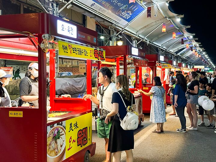 観光客には、昼間から利用できる屋台や軽食店が特に人気です。2016年に夜市(ヤシジャン)がスタートして以降は、夜の時間帯も人の流れが生まれ、大邱の夜間観光ルートの一つとして定着しました。西門市場は、大邱ローカルフードと市場グルメが集まり、昼も夜も「胃袋トリップ」してみたい、食べ歩きパラダイスです。