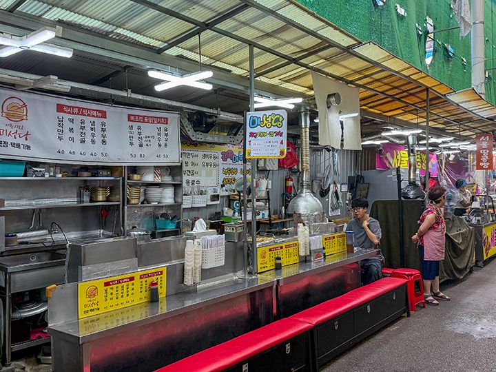 西門市場は屋台だけでなく、コンサートスペースもあり、ミュージシャンの方が歌ったりしていますが、なんと日本人のアーティストさん(日本在住)も出演されていて、聞いてみたところ、韓日文化交流として招いているとのこと。韓国語が話せるアーティストさんではありませんでしたが、MCの時は同時通訳できるスタッフさんが訳し、皆さん楽しそうに聴いていらっしゃいました。昨今の両国関係、ニュースではピリピリした報道が多いですが、このように地元の人々が集う市場で積極的に文化交流している姿勢は素晴らしいと思いました。