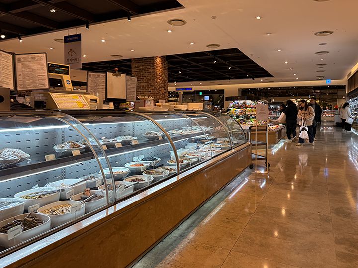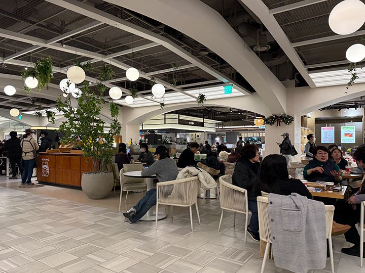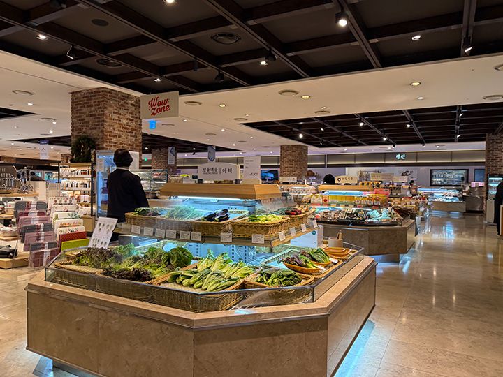 「現代百貨店(ヒュンダイ・デパート)」は、韓国を代表する有名デパートのひとつです。全国各地に店舗があり、「弥阿(ミア)店」はソウル市北部に位置しています。最寄り駅である地下鉄4号線「弥阿サゴリ駅」周辺は、デパートや大型マート、映画館、レストラン、カフェ、ショップが集まる地元の繁華街として知られています。この店舗も、主に地元のマダム層を中心に、日常使いのデパートとして親しまれています。中でも、デパ地下(食品フロア)、1階のデパートコスメフロア、上階のレストラン街は特に人気が高く、お買い物や食事を楽しむ人でにぎわっています。