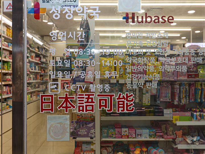 日本人が多く居住する二村(イチョン)にある「2階ソンジャン薬局」。地下鉄4号線二村駅から徒歩約4分、名前の通りビルの2階にあります。 繁華街にある大型薬局のような雰囲気ではなく「街の相談薬局」として、地元の人たちとのつながりを大切にしている小さな薬局です。 しかし、こぢんまりとした薬局内には美容アイテムとして人気の機能性化粧品や手軽に購入できるニキビパッチ、脱毛治療剤やサプリなど、韓国ならではの商品がずらりと並んでいます。 「2階ソンジャン薬局」には10年以上に渡る日本での薬剤師経験を経て、韓国でも薬剤師資格を取得した日本人薬剤師が勤務。二村に住む日本人の心強い味方として、薬の情報や健康相談をサポートしています。