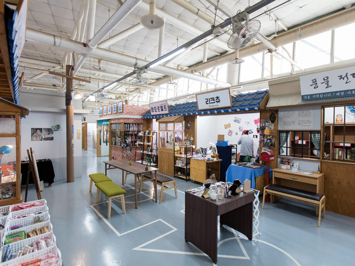 「風物(プンムル)市場」は骨董品をはじめ、衣類、ファッション小物、電子工具、骨董品、工芸品、地域の特産品などが売られる市場です。2008年、東大門運動場(トンデムンウンドンジャン)からソウル東部の新設洞(シンソルドン)に移転しました。店舗数は約900。柱をむき出しにした構造で「川」をコンセプトに3つの建物がつながっています。屋根付きで雨の日も大丈夫です。また1階から2階へは緩やかなスロープがあり、トイレは車イス用が整備されています。