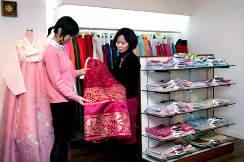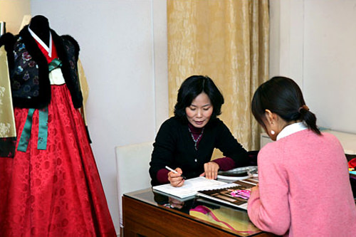 チマチョゴリ専門店「ファングムパヌル」は、婚礼衣裳やチマチョゴリ(韓服、ハンボッ)のお店が軒を連ねる、梨大(イデ)のウエディングストリートにあります。商品は、「快刀 洪吉童(ホン・ギルドン)」など映画やドラマの衣装にも使用されることが多いです。1階は既製品の販売、2階がレンタル&オーダーメイドのフロアで試着室もあります。レンタル服はオーダー製品と同じ上質のシルク地で作られ300着以上が揃います。レンタル時、パスポートと30%の前金が必要で、ヘアメイクなどはできません。オーダーメイドもでき、院長は日本語ができます。
