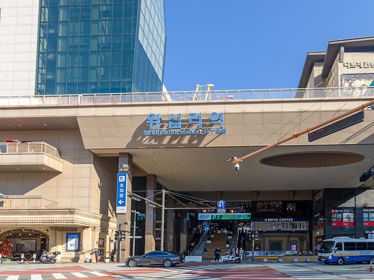 「BITPLEX(ビットプレックス)」は、地下鉄「往十里(ワンシムニ)駅」に直結する駅ビルです。往十里駅には、地下鉄2号線、5号線、水仁(スイン)・盆唐(ブンダン)線、京義(キョンイ)・中央(チュンアン)線など複数の路線が乗り入れており、ソウル屈指の交通の要所として機能しています。東大門(トンデムン)や聖水洞(ソンスドン)に近いので、観光客にとっても移動しやすく便利な立地です。