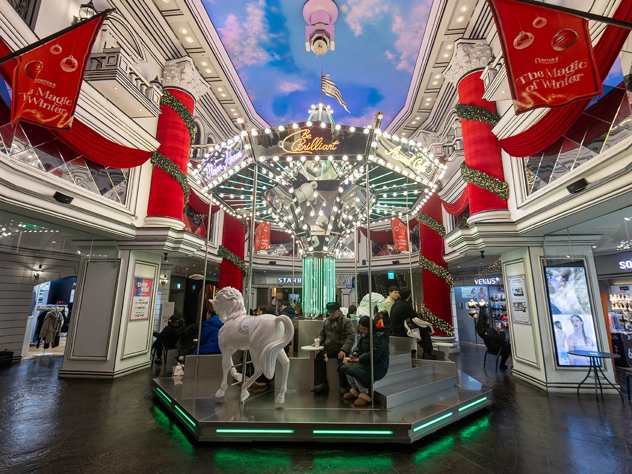 館内には、ファッションモールをはじめ、大型マート「emart(イーマート)」、国内最大級のスクリーン数を誇るシネマコンプレックス「CGV」、フードコートや大型書店など、さまざまな商業施設が集まっています。ショッピング、グルメ、エンターテインメントを一度に満喫できる、旅行中の立ち寄りに最適な複合スポットです。