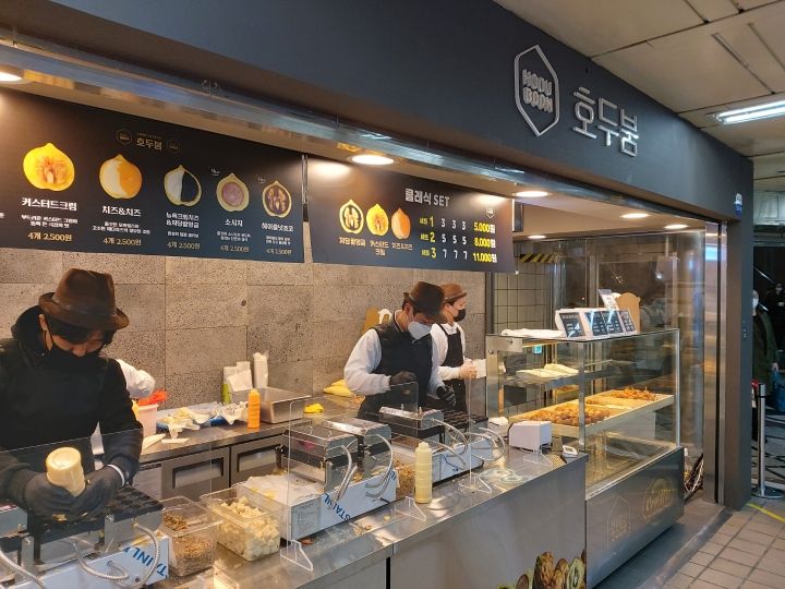 チーズ入りのくるみ饅頭が人気@乙支路入口駅構内店