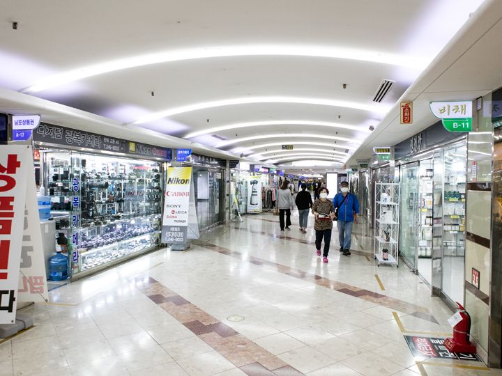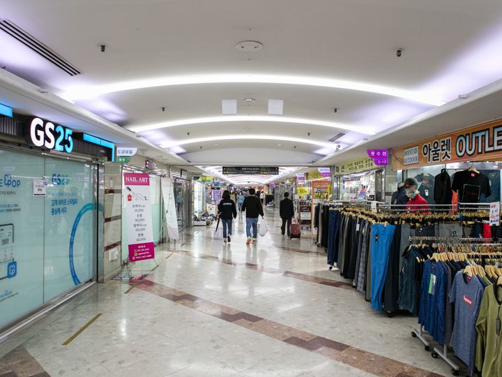 釜山(プサン)を代表する観光エリア・南浦洞(ナンポドン)にある地下商店街の一か所です。釜山地下鉄1号線の中央(チュンアン)駅と南浦(ナンポ)駅の間に位置する地下ショッピングセンターが「光復地下ショッピングセンター」で、南浦駅とチャガルチ駅を結ぶ地下街は「南浦地下ショッピングセンター」と、厳密には異なる施設ですが、一般の利用客には、2つの施設を区別することなく中央駅からチャガルチ駅まで長い地下街がある、と思うのが一般的です。南浦駅周辺は照明が明るく若い層向けのファッション店、コスメショップなどが多く、中央駅方面には登山服店、民族工芸品店、音楽用品店などバラエティに富んだラインナップ。地下道を歩いてみると、どこか懐かしい日本の昭和の頃のような雰囲気が感じられることでしょう。