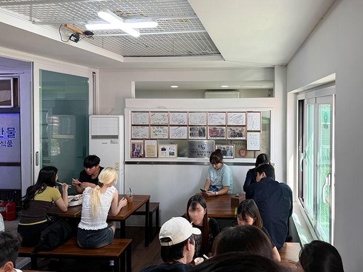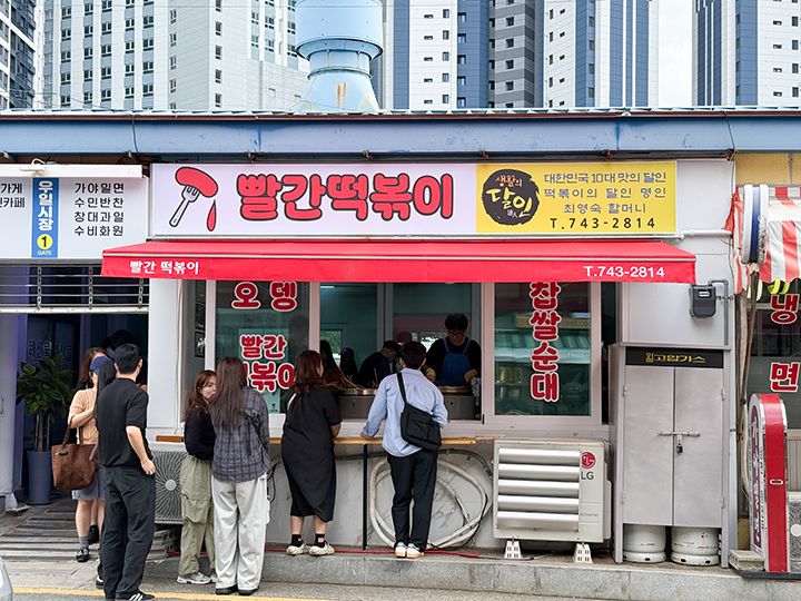 釜山・海雲台(ヘウンデ)で有名なトッポッキ(トッポギとも)店が「パルガントッポッキ」です。店名の「パルガン」とは「赤い」という意味の韓国語で、文字通り真っ赤な色のトッポッキが地元で人気です。見た目ほど辛くなく、ピり辛の中に甘み・コクが感じられます。テレビ番組で紹介されることが多く、「生活の達人」というプログラムでは見事、トッポッキの達人に認定されました。そのため全国からトッポッキファンが駆けつけるお店になり、店内には芸能人のサインもズラリ。日韓グルメ番組「隣の国のグルメイト」でもソン・シギョンと松重豊が訪問しました。以前はテイクアウト専門店でしたが、2025年9月に移転し、店内でイートインもできるようになりました。店内での食事は廃線側から、テイクアウトは道路沿いのカウンターから注文できます。