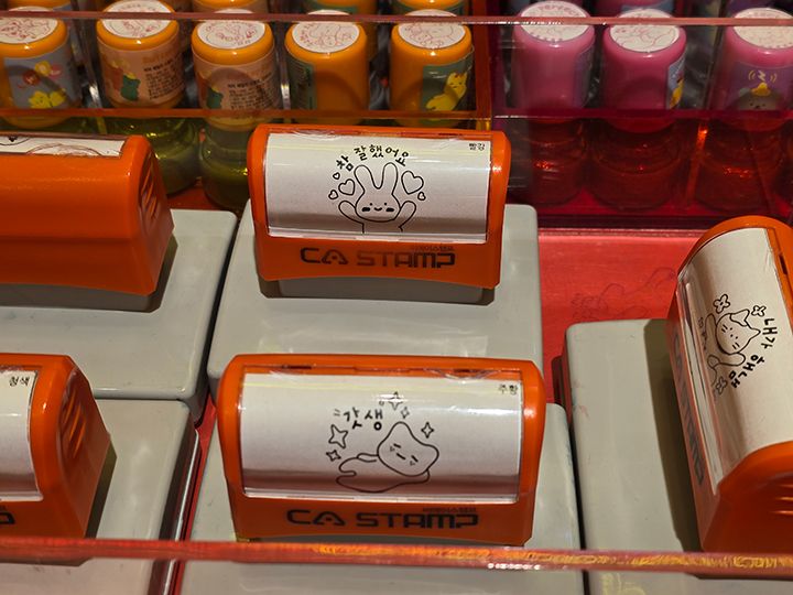 「BUTTER(バター)」は、韓国の大手アパレル企業「E-LAND(イーランド)グループ」が運営する人気の雑貨ブランドです。ポップでカワイイ雑貨・ハングルグッズがたくさん!K-POPアイドルの中にもバターのファンが多く、ぬいぐるみの写真がSNSに上がったりします。黄色くてとろけるような表情のキャラクターの名前は「バター君」。白色のネコは「ミルクキャット」、ピンクのうさぎは「スクラビット」で、この3体あわせて「BUTTER FAMILY(バターファミリー)」と呼ばれています。店舗は全国各地にあって、ソウルの明洞(ミョンドン)にも2店舗あり(2024年5月時点)、「明洞店」は繁華街のど真ん中、「ソウルロイヤルホテル」の隣にあって、黄色と赤の派手なお店がひときわ目立ちます。
