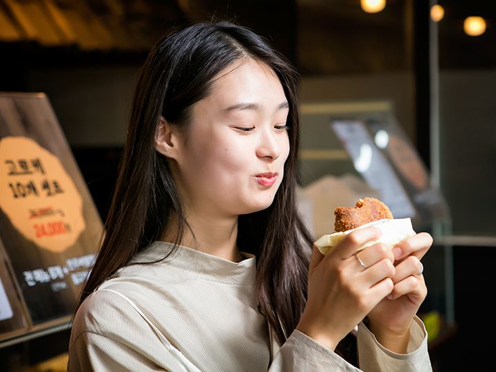 韓国のコロッケは日本の揚げパンに相当するおやつで、韓国でも老若男女すべての方に好まれています。全州(チョンジュ)市の人気観光エリア「全州韓屋村(チョンジュ・ハノンマウル)」にあるコロッケ専門店がSNSを中心に話題沸騰中!全州の郷土料理のビビンバやトッカルビを具材にしたものが大ヒットしています。ここでしか食べられないご当地コロッケなので「全州韓屋村で必ず食べたい!」と言われるまでになりました。一番人気は「全州ビビンバコロッケ」で、外はカリっと、中は野菜がたっぷり入ったジューシーな一品で、他にも「プルコギビビンバコロッケ」「トッカルビコロッケ」も人気です。1つずつ買って味を食べ比べてみませんか?食べ歩きおやつにピッタリです。