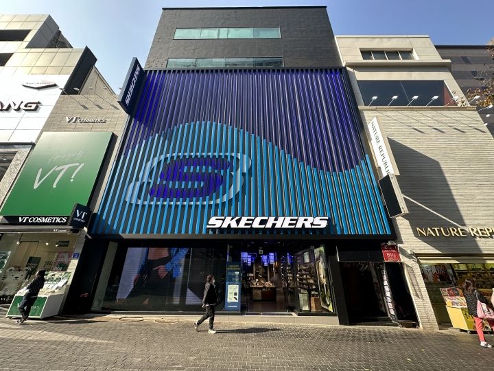 明洞メインストリートにあるシューズブランド店「スケッチャーズ」