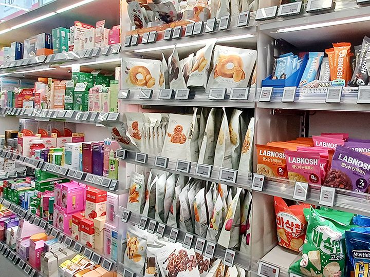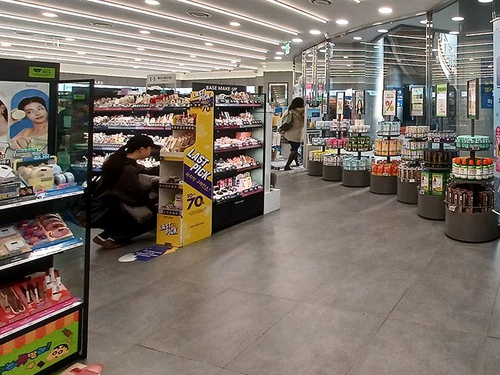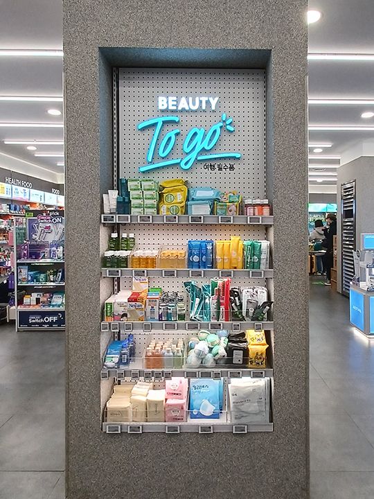 「OLIVE YOUNG(オリーブヤング)」は、「ヘルス&ビューティー」をコンセプトにした韓国の人気ドラッグストア。全国各地に店舗があり、日本のコスメファンにも「オリヤン」の通称でよく知られています。「OLIVE YOUNG ソウル駅店」は地下鉄1号線の改札を出てすぐの1番出口、ソウル駅に向かう途中にあります。旅の基点となるソウル駅の店舗だけに旅行グッズのコーナーがあります。また他の店舗よりもメンズコーナーが充実。駅利用者の便宜が図られているラインナップです。そのためお菓子などのフード系は少なめ。店内の通路はゆったりしていてスーツケースを置ける余裕スペースも。