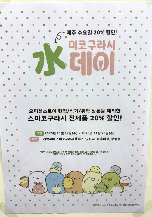 | 店名 | Rilakkuma Sumikkogurashi PLUS by San-X 弘大店 |